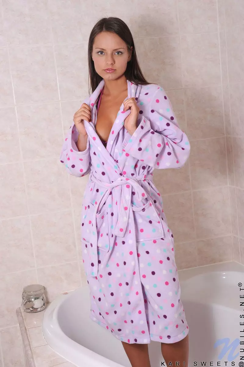 Kari Sweet сует игрушки в голую тугую киску в ванной комнате после снятия пижамы и бикини — Kari Sweet
