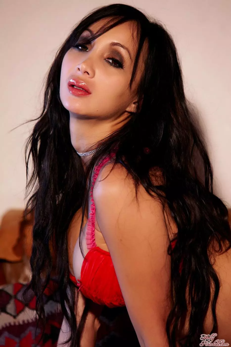 Красное белье Katsuni падает, открывая большие азиатские сиськи — Katsuni