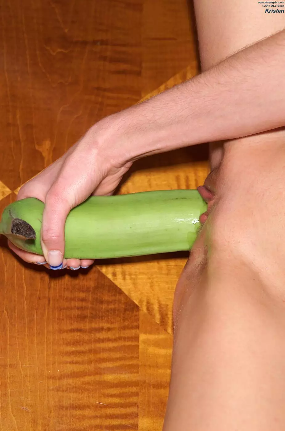 Симпатичная белокурая малышка Kristen ALS сует большой зеленый банан в тугую киску — Kristen ALS