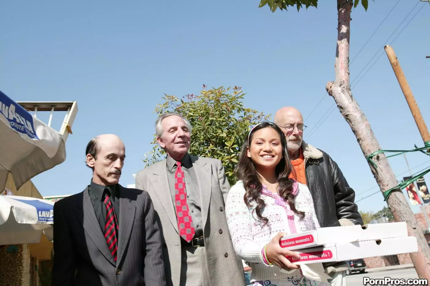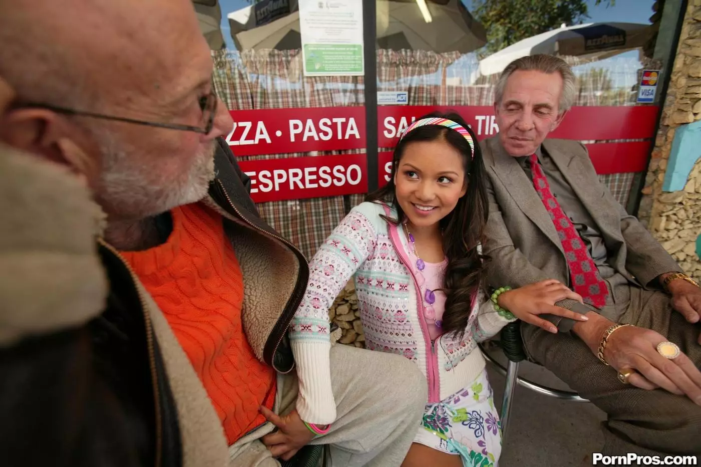 Классная азиатская красотка Lana Violet была поймана двумя возбужденными старыми мужиками — Lana Violet