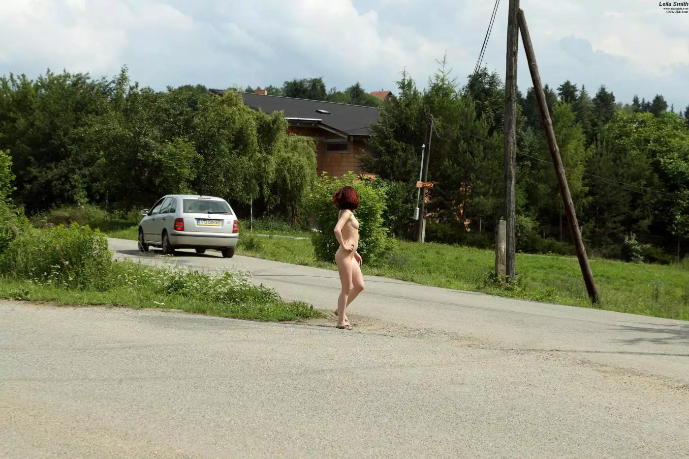 Полностью обнаженная брюнеточка Leila Smith просто обезумела! Она ходит по улице и пытается поймать машину — Leila Smith