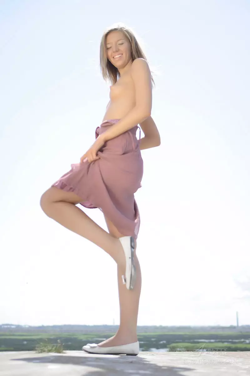 Блондинка Lena Nubiles позирует на природе, показывая грудь и киску — Lena Nubiles