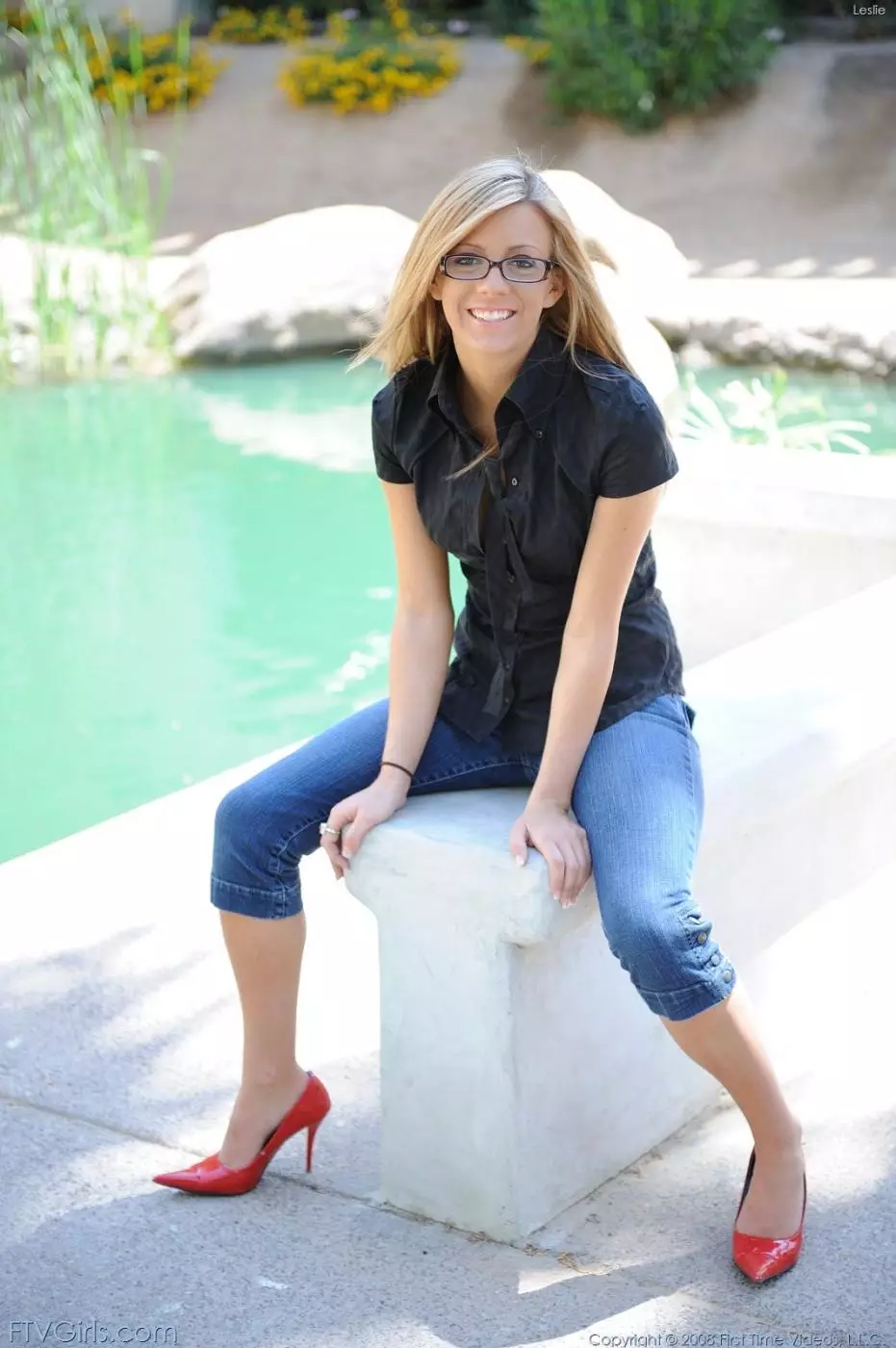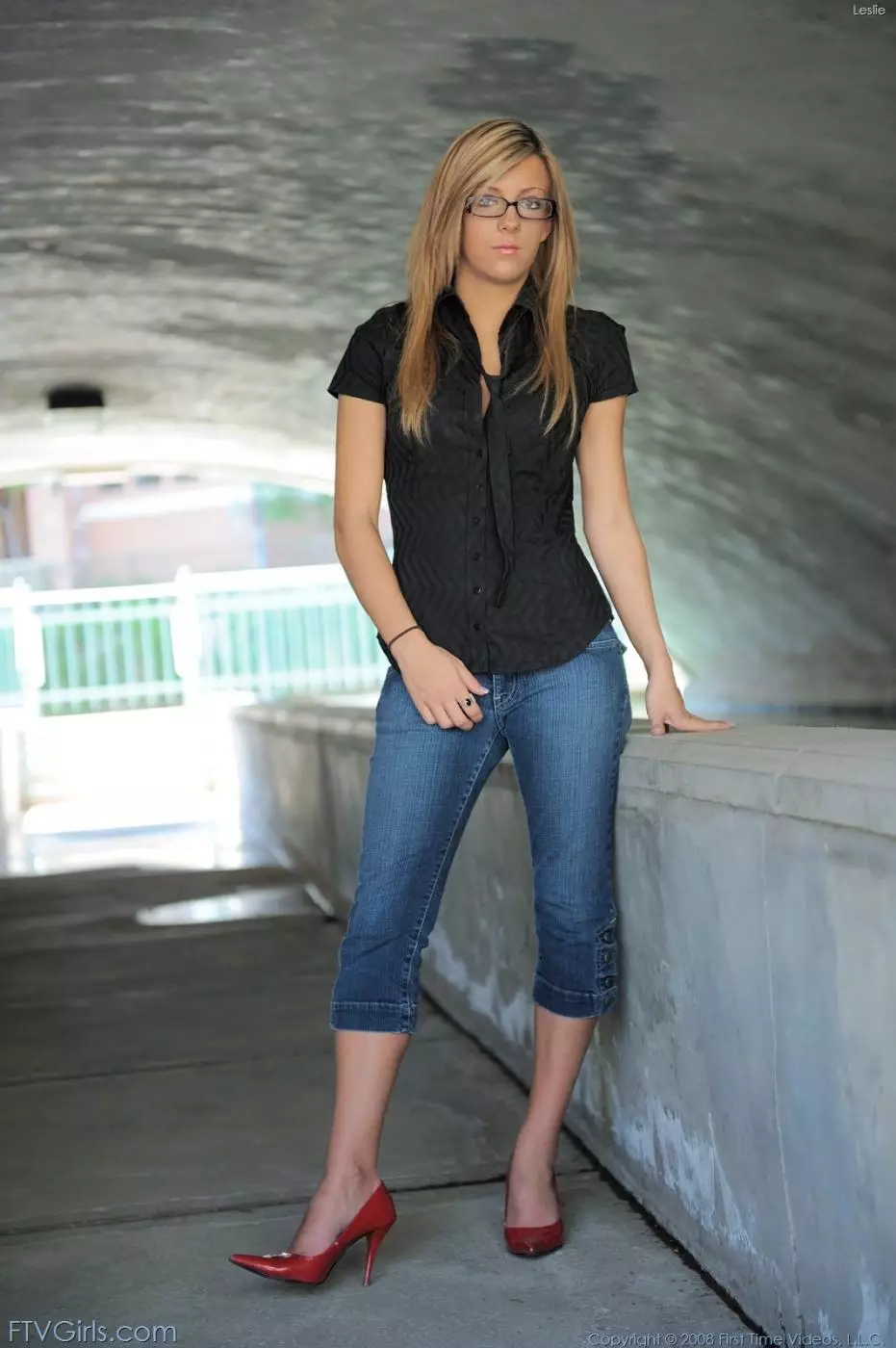 Знойная детка в очках и с гладкой киской Leslie FTV полностью раздевается под мостом — Leslie FTV