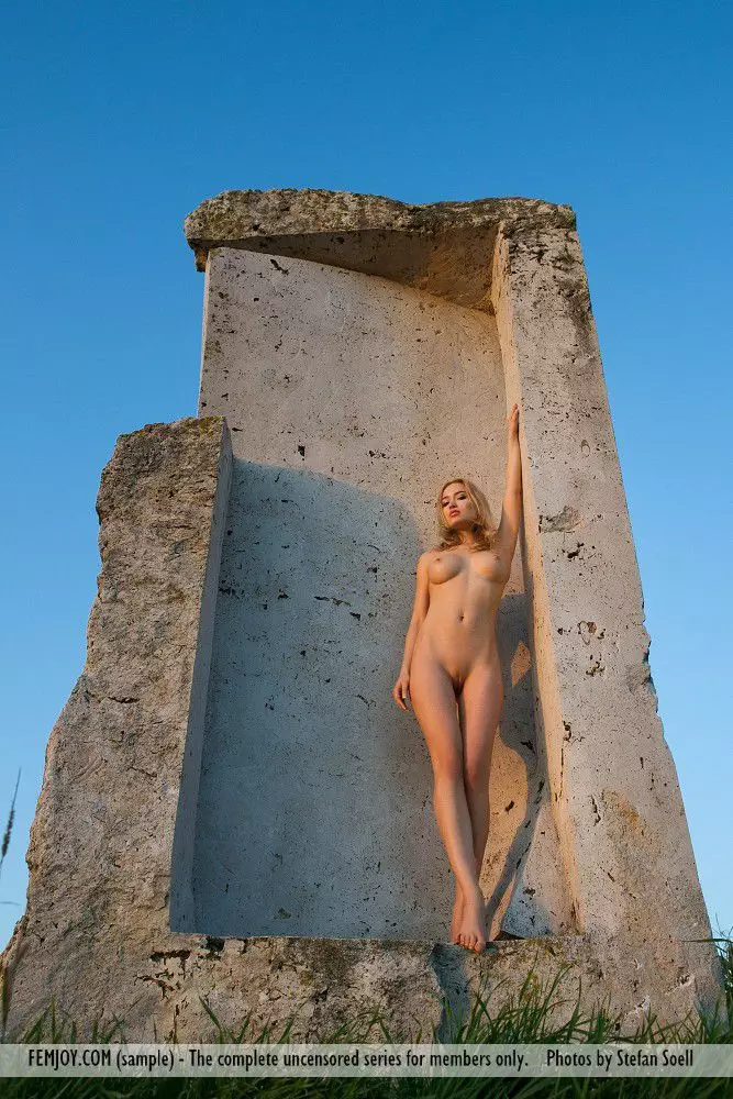 Соблазнительная белокурая соблазнительница Lia May выглядит как прекрасная статуя абсолютно голая на свежем воздухе — Lia May