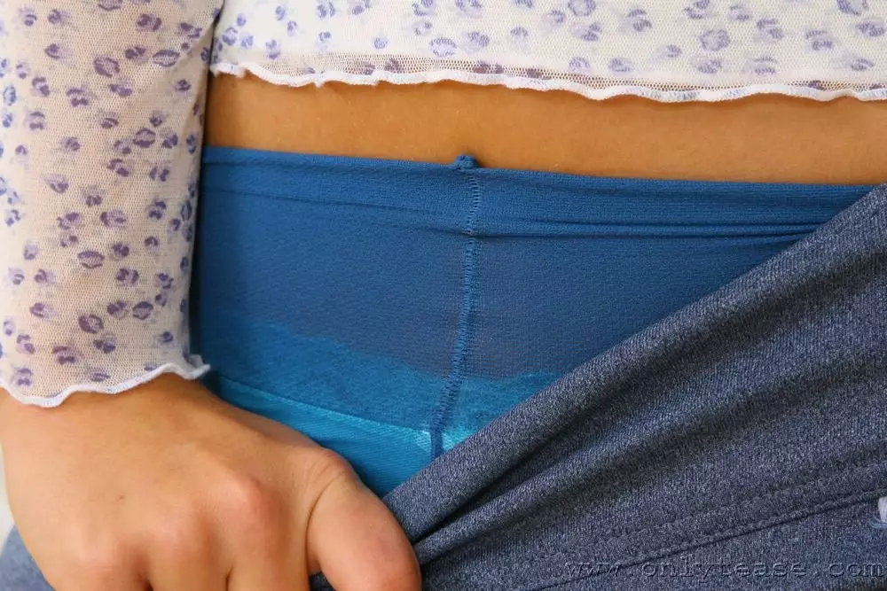 Развратная блондинка в голубых колготках - Lizzy Merova, показывает свои красивые сиськи и пухлые губки киски — Lizzy Merova