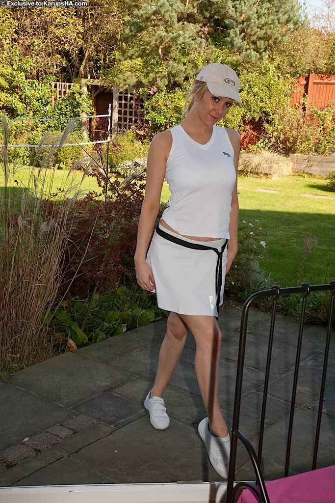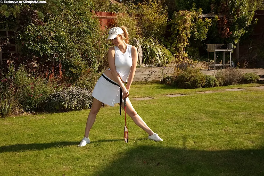 Lucy Alexandra с большой грудью и аккуратной киской снимает белую теннисную форму и трусики — Lucy Alexandra