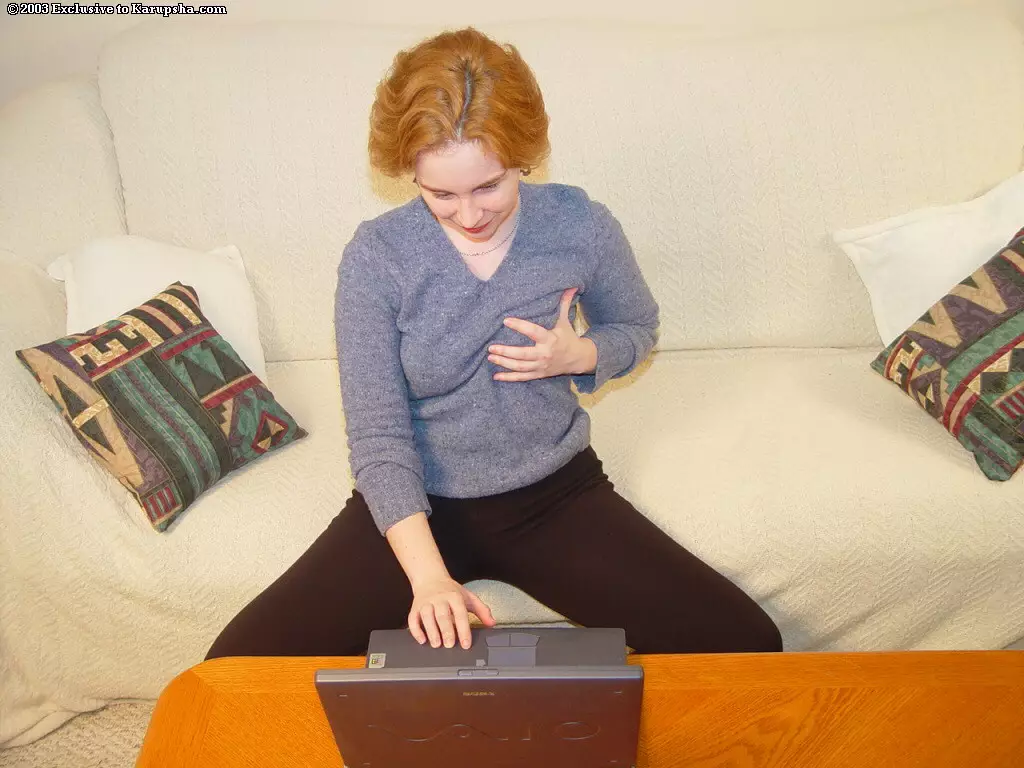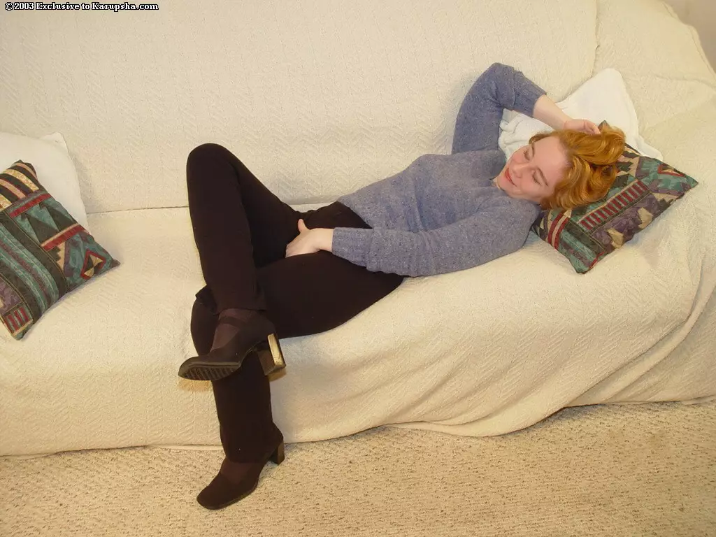 Рыжеволосая дама Lucy Knight раздевается до гола и затем играет со своей розовой киской — Lucy Knight