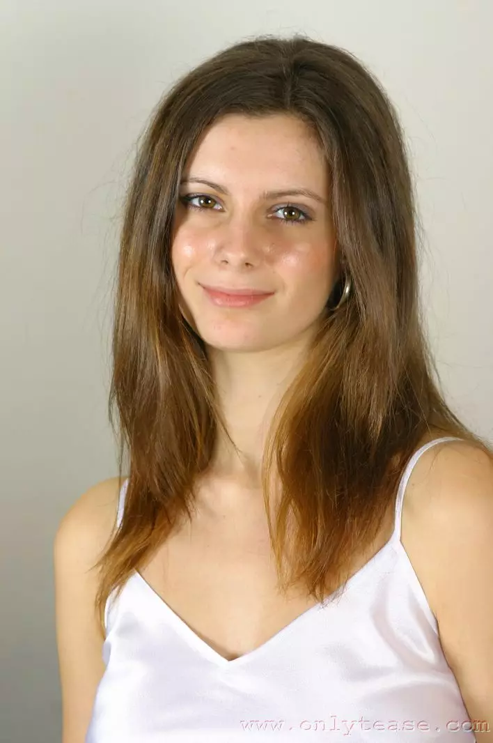 Милая детка в белых чулках Martina Onlytease стягивает ночнушку, чтобы показать возбуждающую грудь — Martina Onlytease