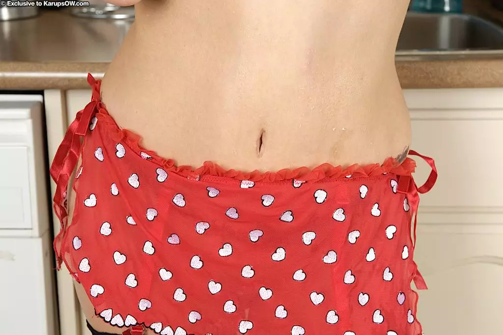 Грудастая мамочка с упругой попой Megan Anilos снимает красное белье на кухне — Megan Anilos