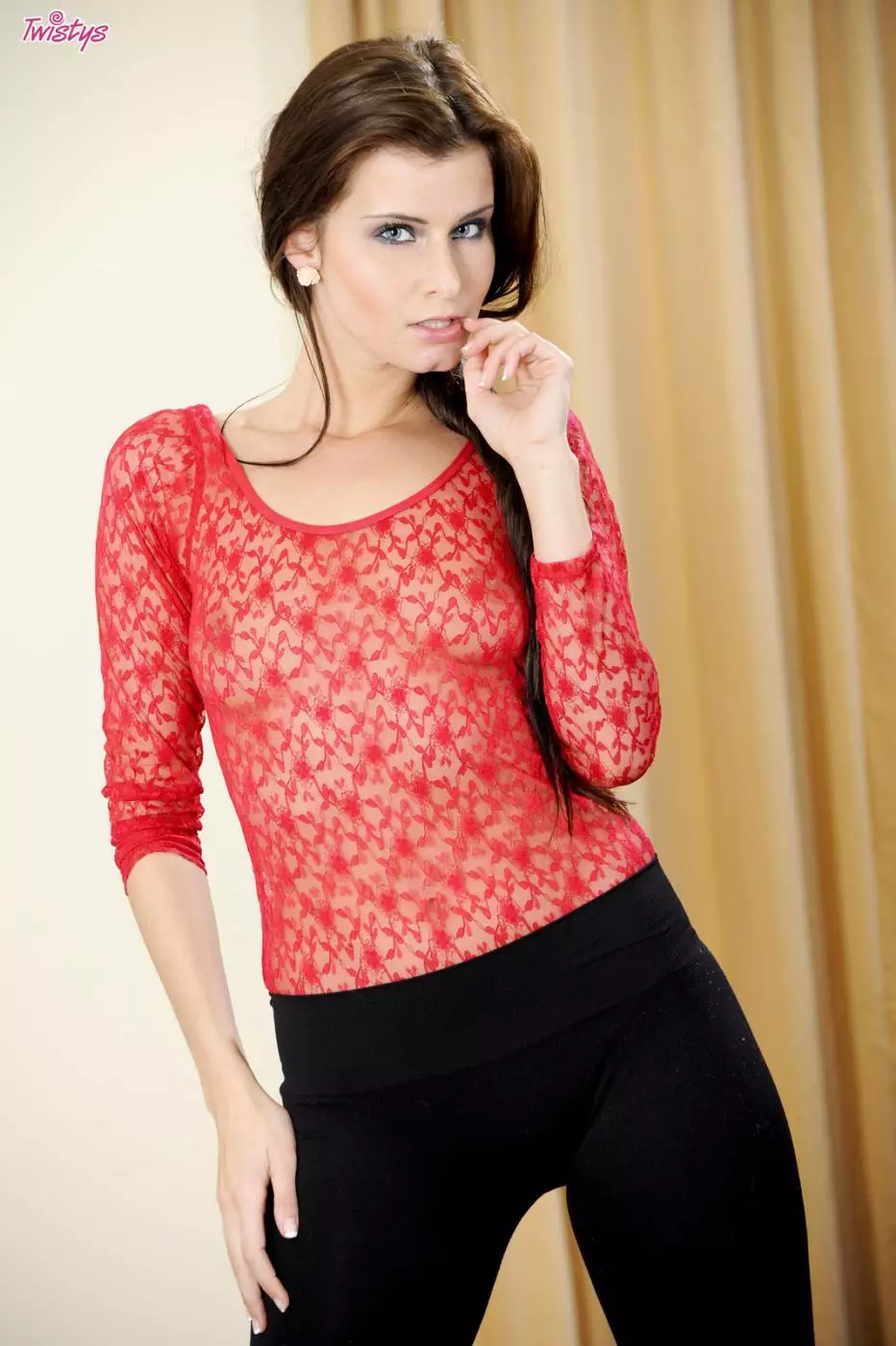 Брюнетка с маленькой грудью и бритой киской Megan Cox снимает кружевной наряд — Megan Cox