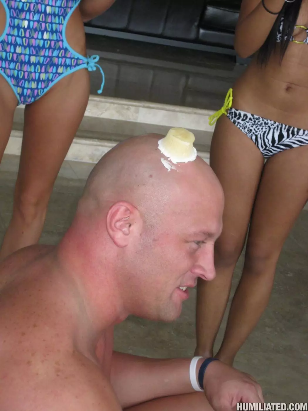 Детка в бикини Melanie Jane и ее подружки унижают и трахают лысого мужика на вечеринке у бассейна — Melanie Jane