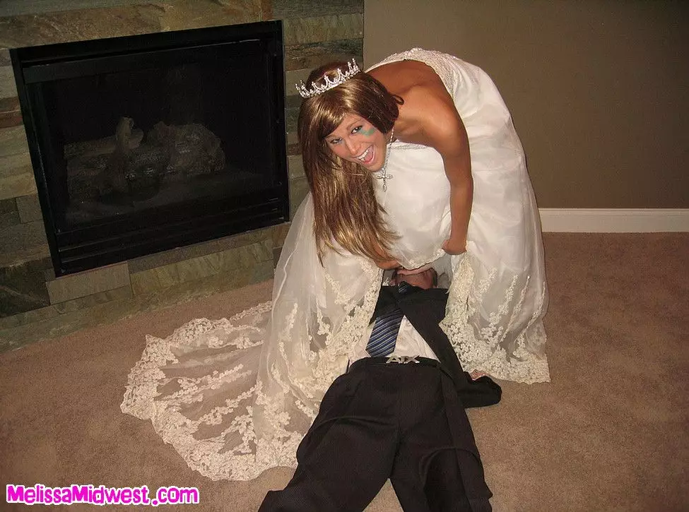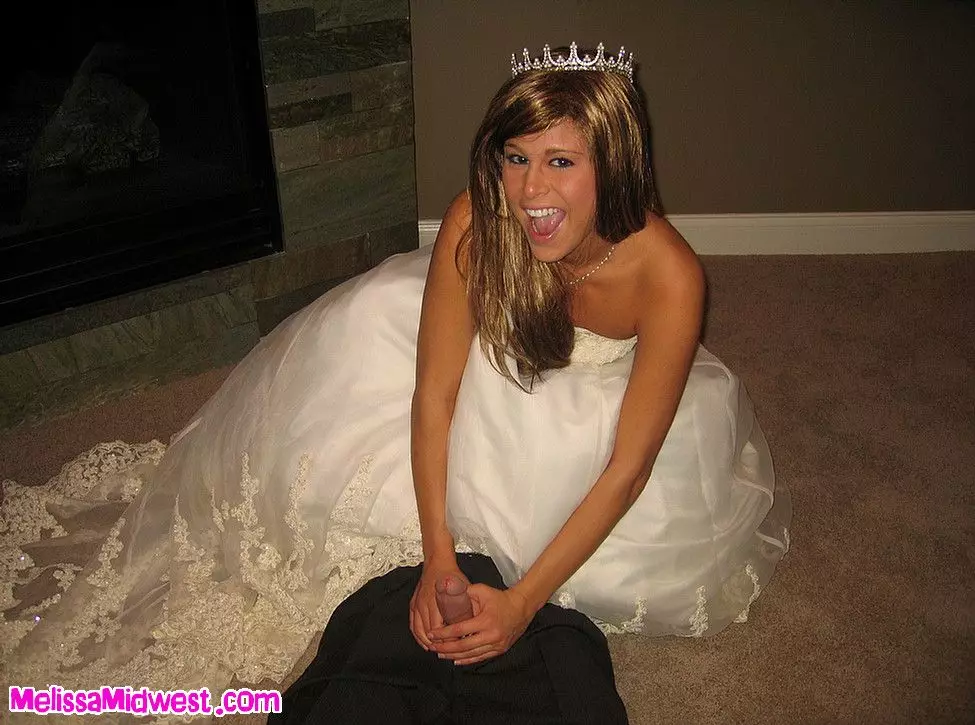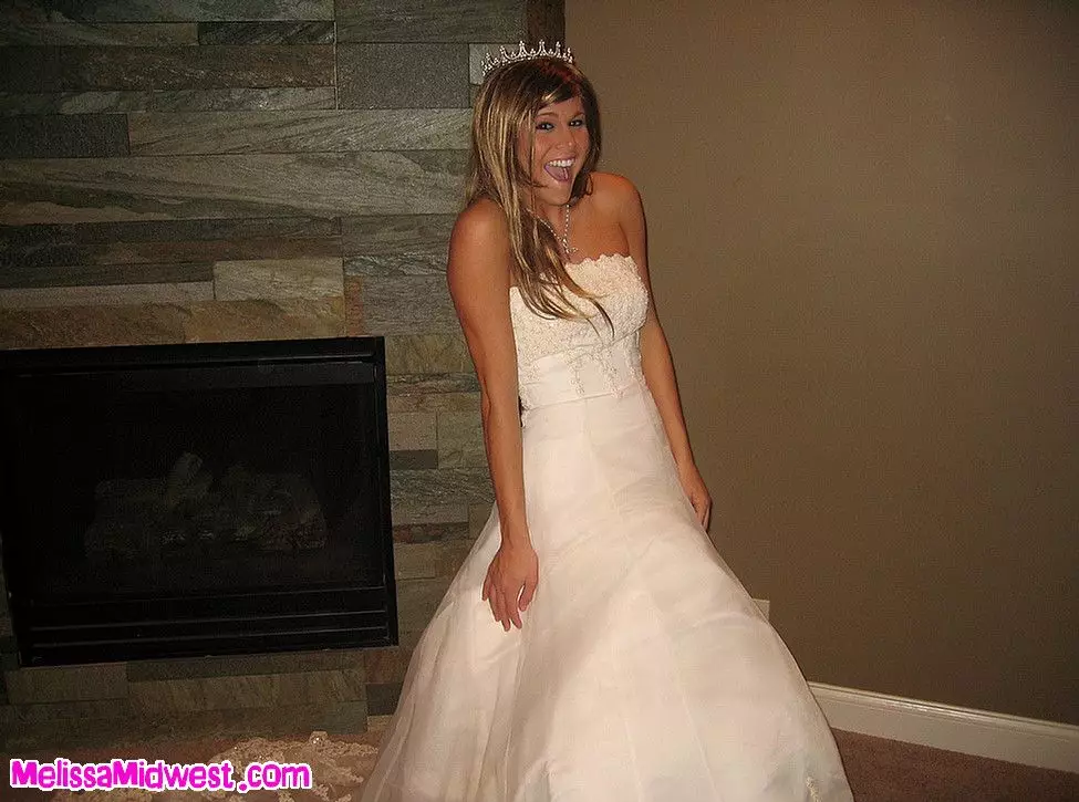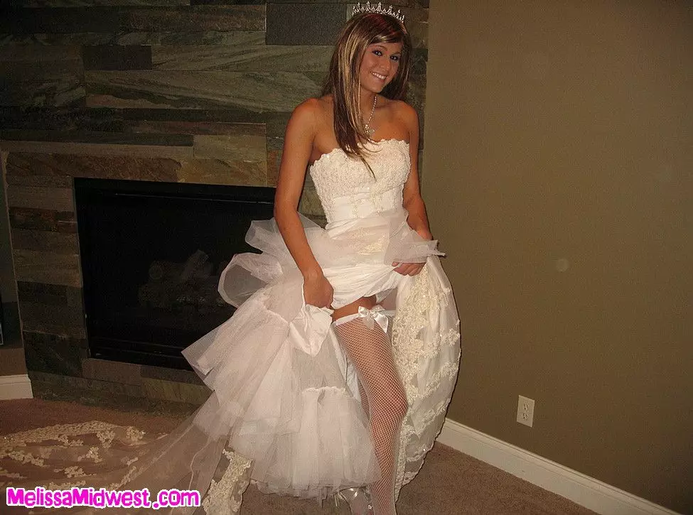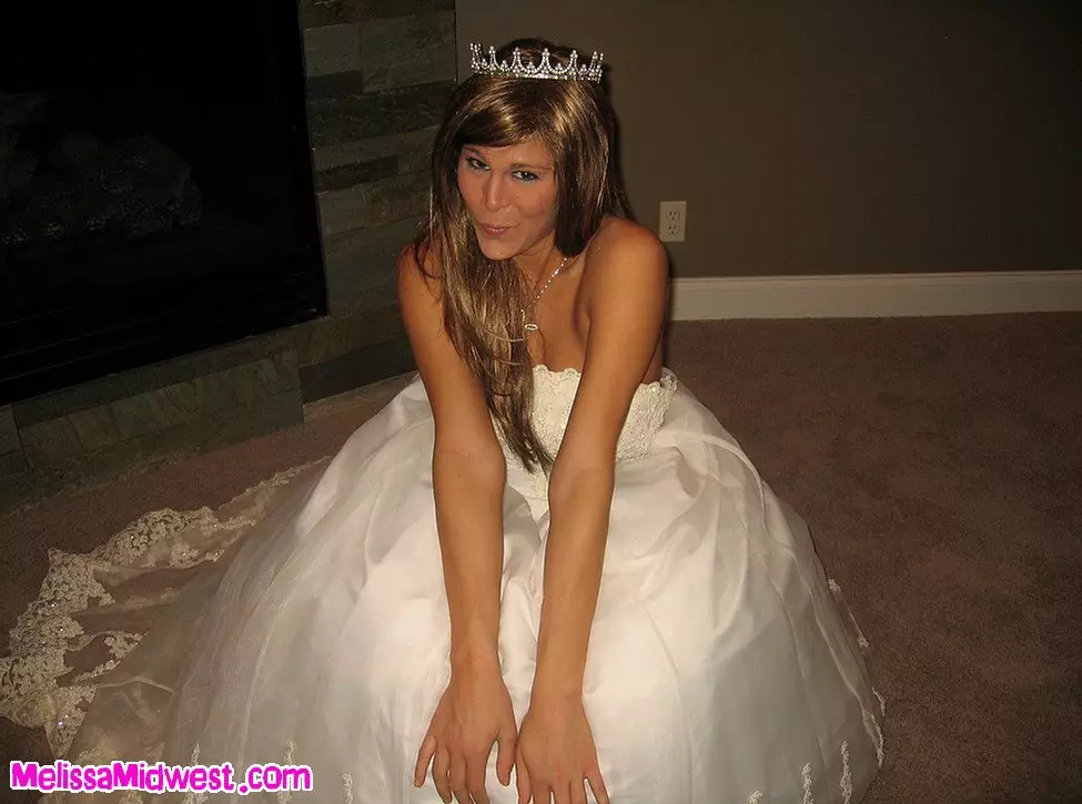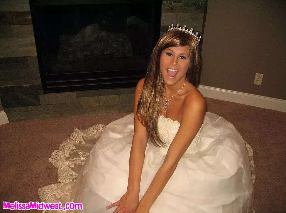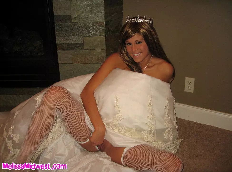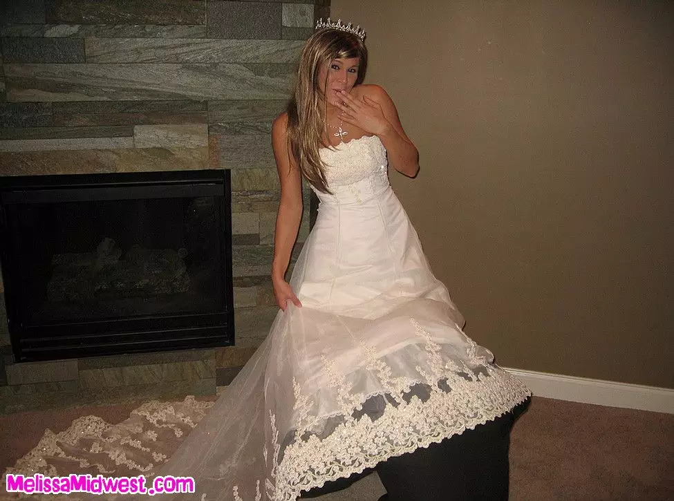 Детка в свадебном платье Melissa Midwest показывает и трахает пальчиками безволосую киску — Melissa Midwest