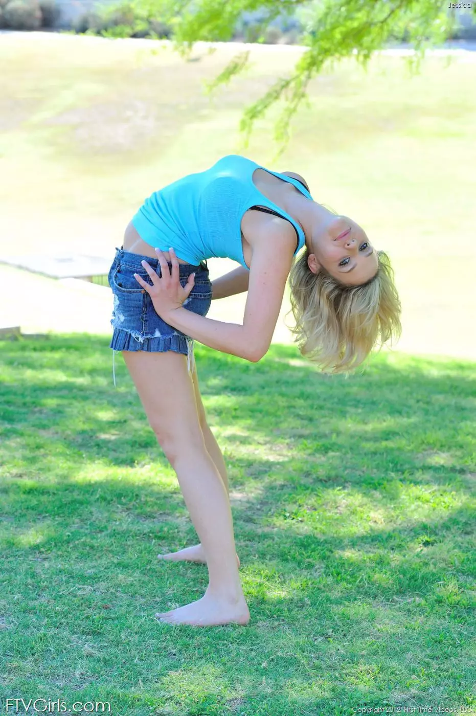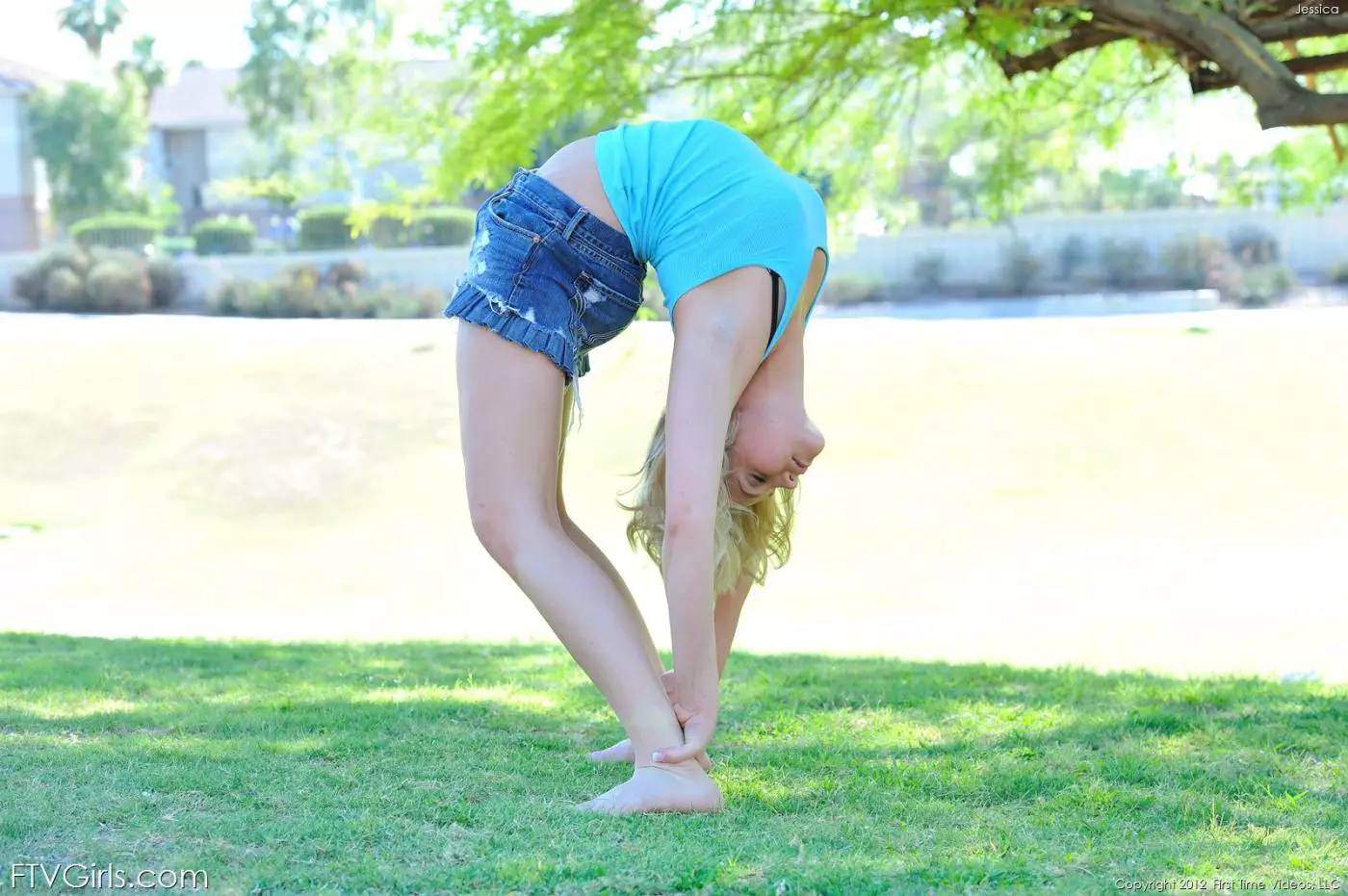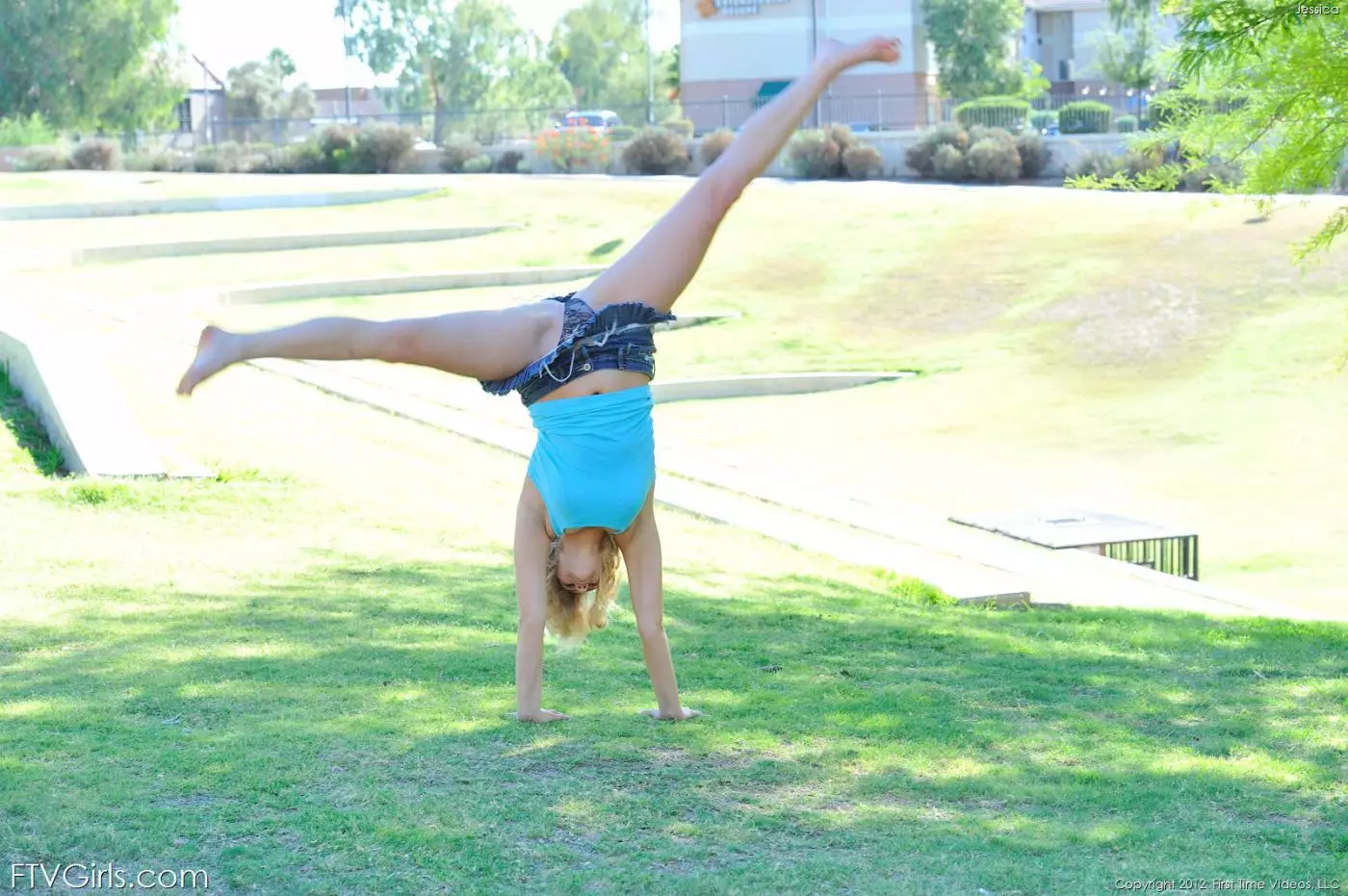 Белокурая малышка Mia Malkova на улице делает гимнастику и показывает свое блестящее тело — Mia Malkova