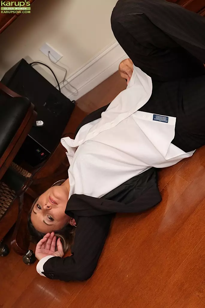 Британская мамаша Misty Law снимает свой офисный костюм и показывает аккуратно выбритую киску — Misty Law