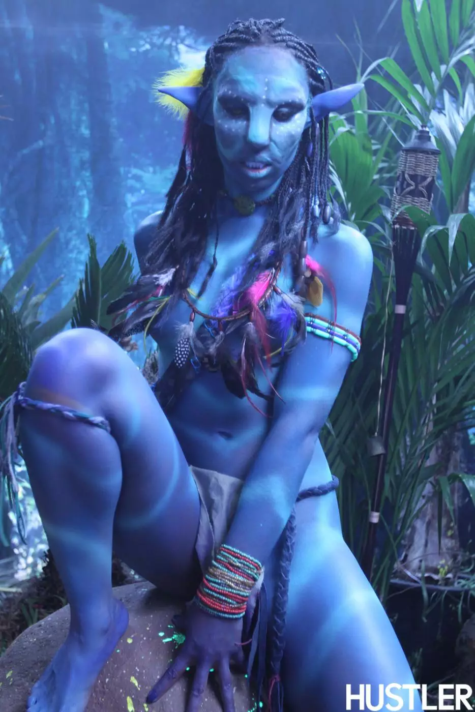 Сексуальная девушка Misty Stone в образе Neytiri, раздвигает ножки и показывает обнаженную киску — Misty Stone
