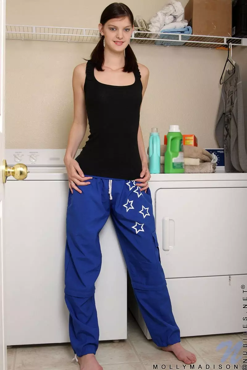 Негодная девушка-подросток Molly Madison показывает свою розовую киску и девственную попку в прачечной — Molly Madison