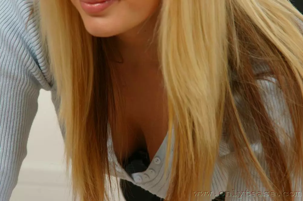 Светловолосая малышка в черной юбке - Molly Onlytease, снимает свою кофточку чтобы продемонстрировать свои очень красивые сиськи 2 размера — Molly Onlytease