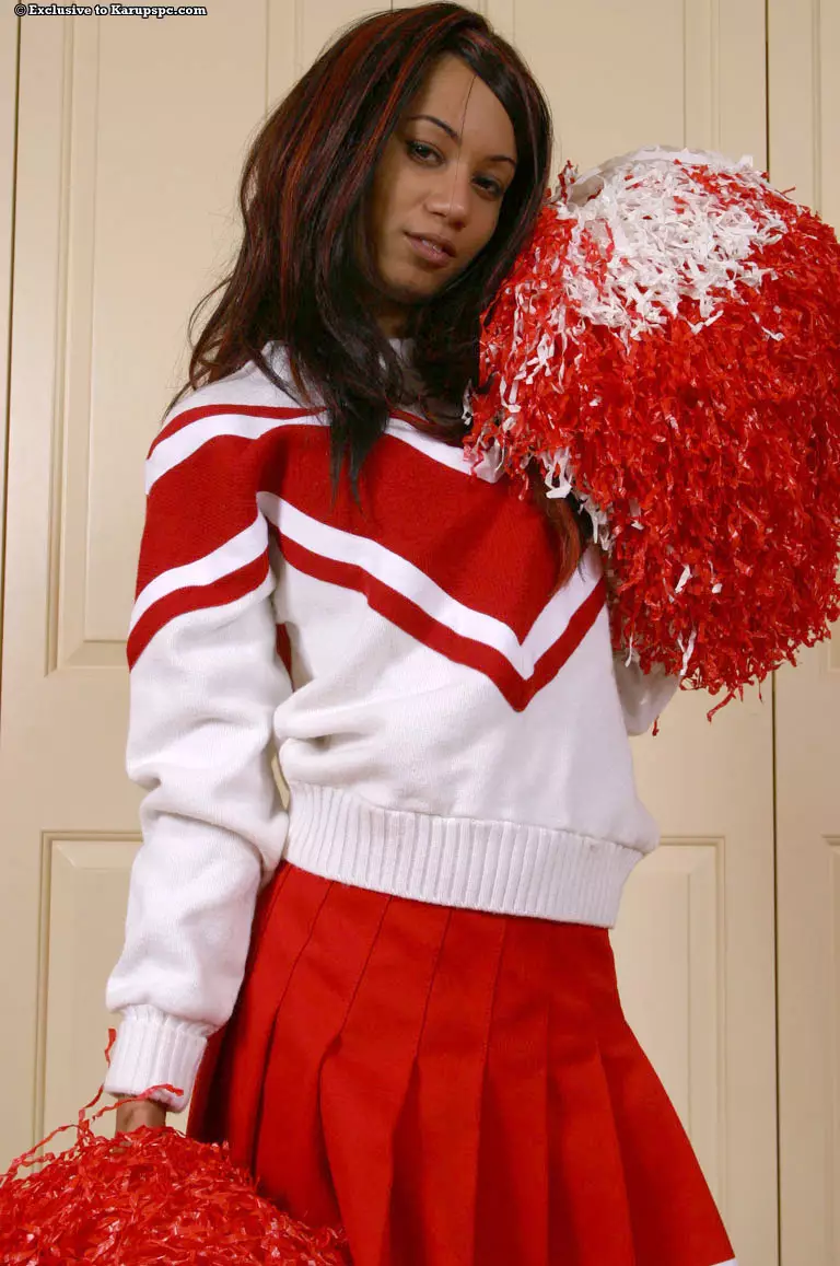 Худая черная чирлидерша Mya Mason снимает униформу и показывает свою волосатую киску — Mya Mason