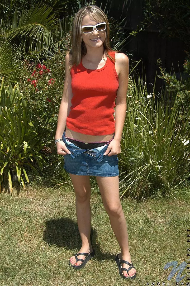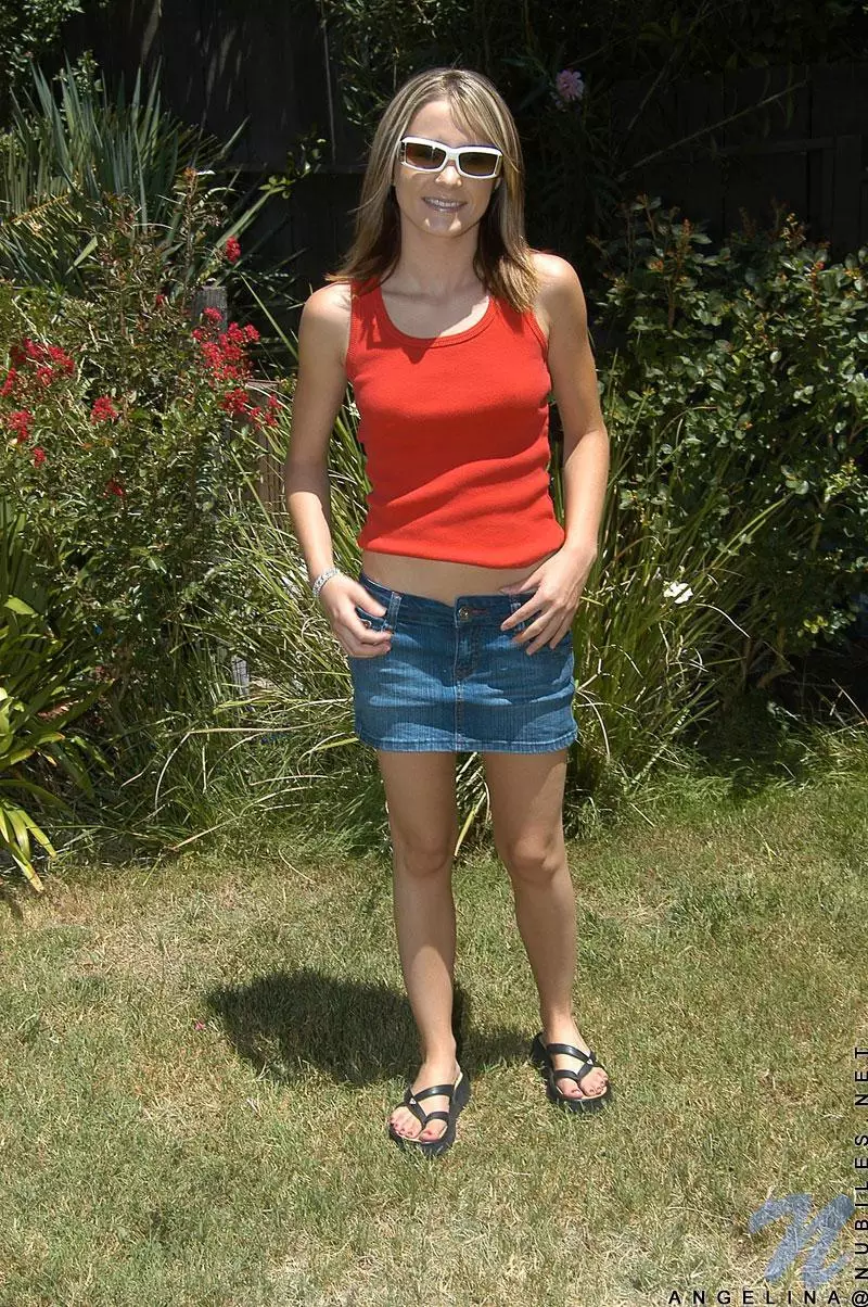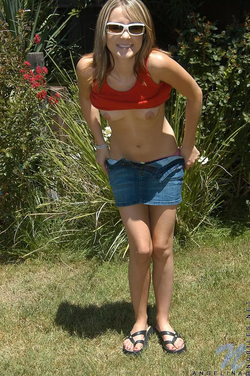 Сексуальная блондинка в очках Nadia Taylor снимает одежду и позирует на свежем воздухе — Nadia Taylor