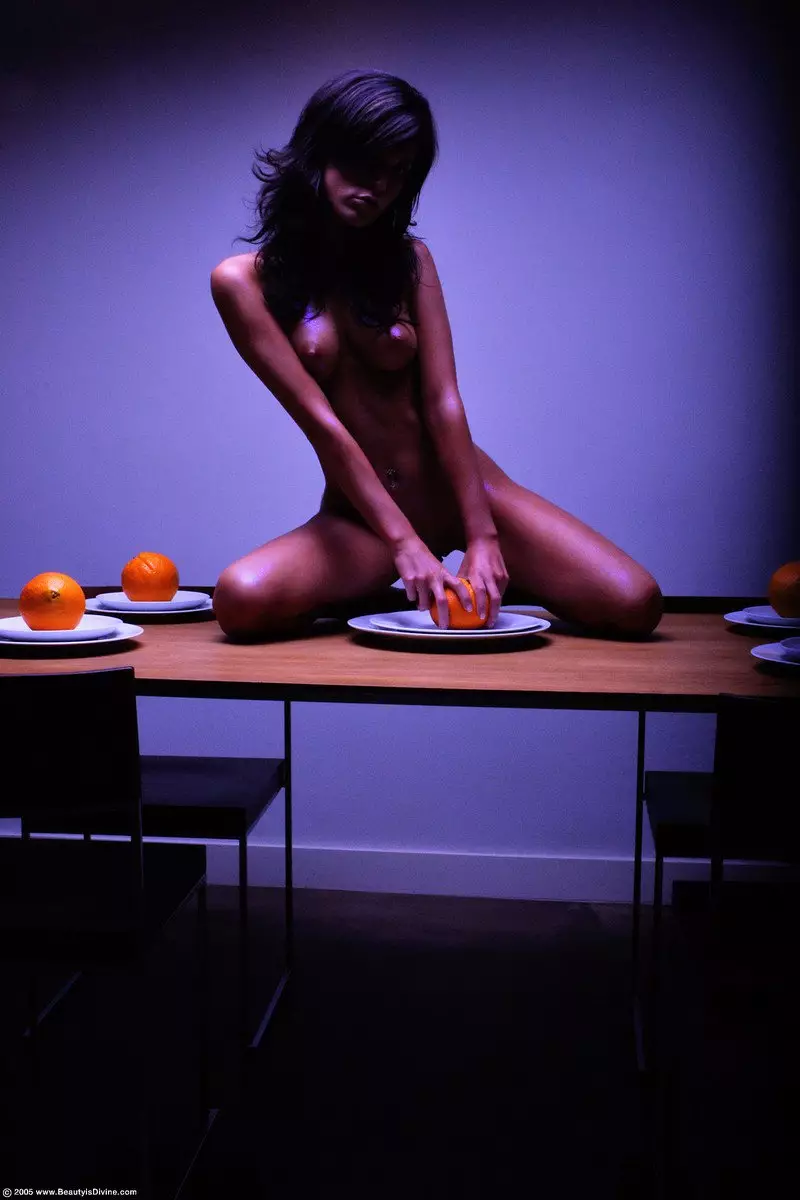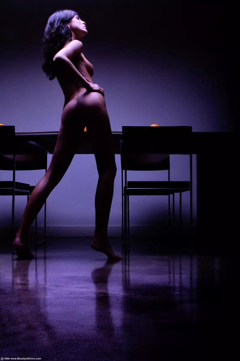 Обнаженная и худая гламурная модель Nelli Hunter позирует обнаженной и курит сигарету в темноте — Nelli Hunter
