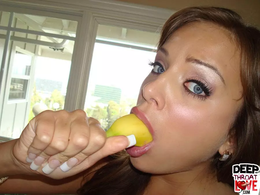 Худая Nika Noire в розовом белье, сосет банан и трахает член — Nika Noire