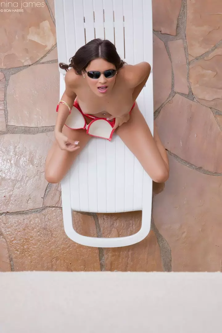 Кто-то подглядывает за Nina James, загорающей топлесс — Nina James