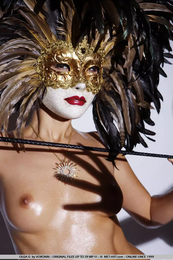 Намасленная гламурная модель со стоячей грудью Olga G любит позировать в маске и с кнутом — Olga G
