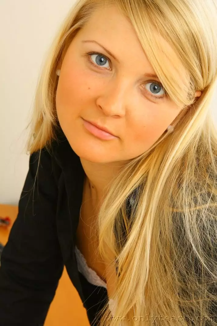 Блондинка-секретарша с миленьким личиком Oxi Onlytease устраивает соблазнительный стриптиз в рабочее время — Oxi Onlytease