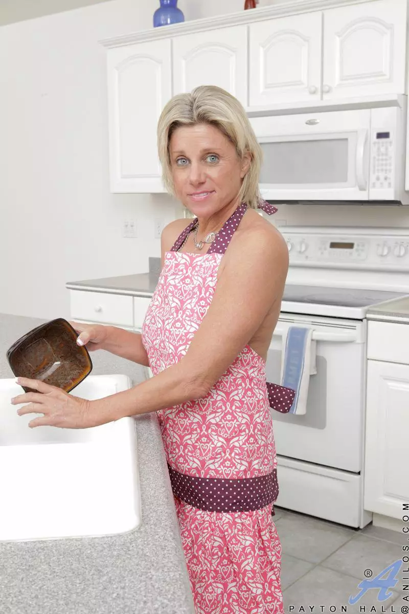 Аппетитная мамочка-блондинка с большой грудью Payton Hall ласкает киску на кухне душем — Payton Hall
