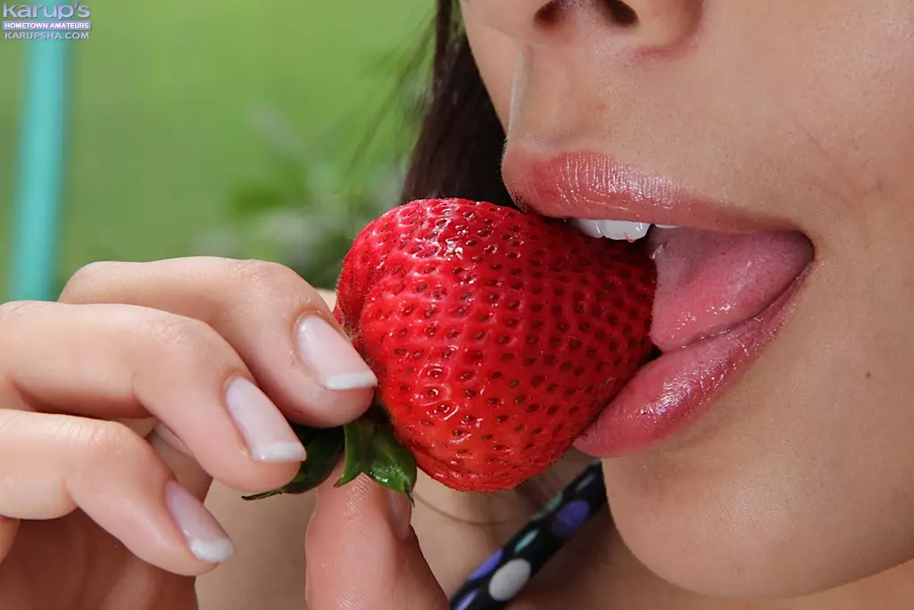 Красотка с маленькой грудью Pebbles Nubiles засовывает клубничку себе в классную киску — Pebbles Nubiles
