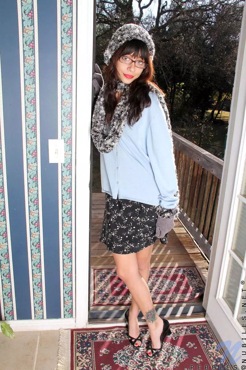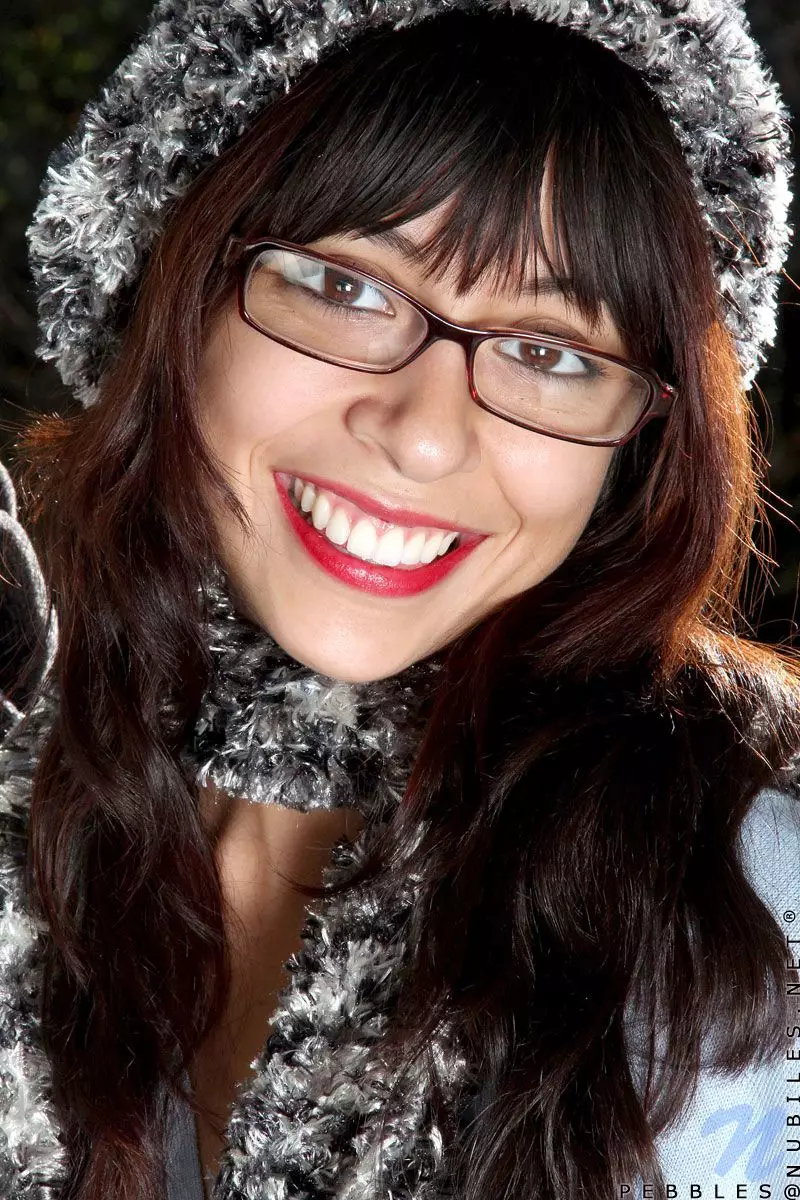 Девушка без трусиков в очках Pebbles Nubiles раздвигает ножки и показывает киску — Pebbles Nubiles
