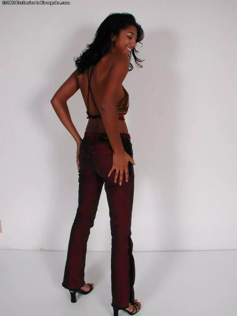 Стройная шоколадная малышка Penelope Lilac обнажается и раздвигает свою пушистую киску — Penelope Lilac