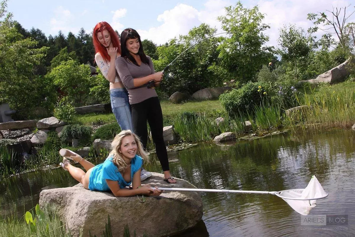 Три худенькие девушки Piper Fawn, Gia и Jenni Gregg раздеваются и показывают свои киски на природе — Piper Fawn