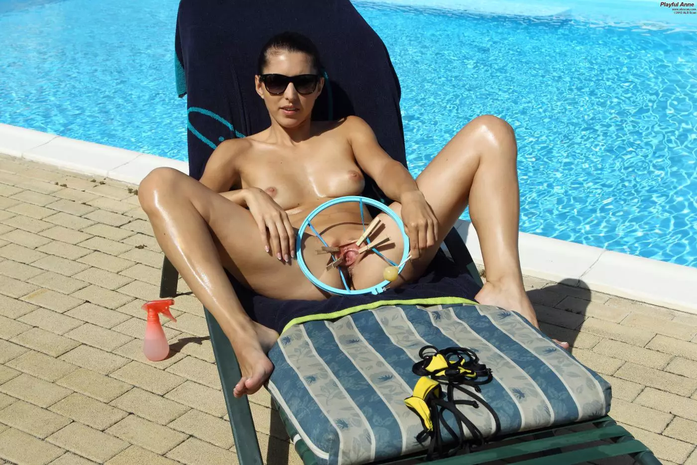 Горячая Playful Ann истязает киску прищепками и чем-то еще странным, растягивая половые губки до предела — Playful Ann
