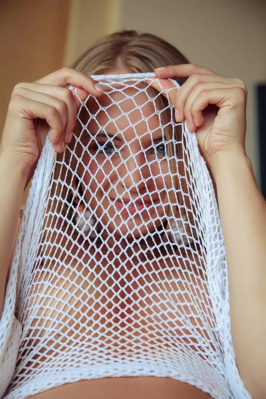 Голое тело блондинки Rachel Blau хорошо видно через сетку — Rachel Blau
