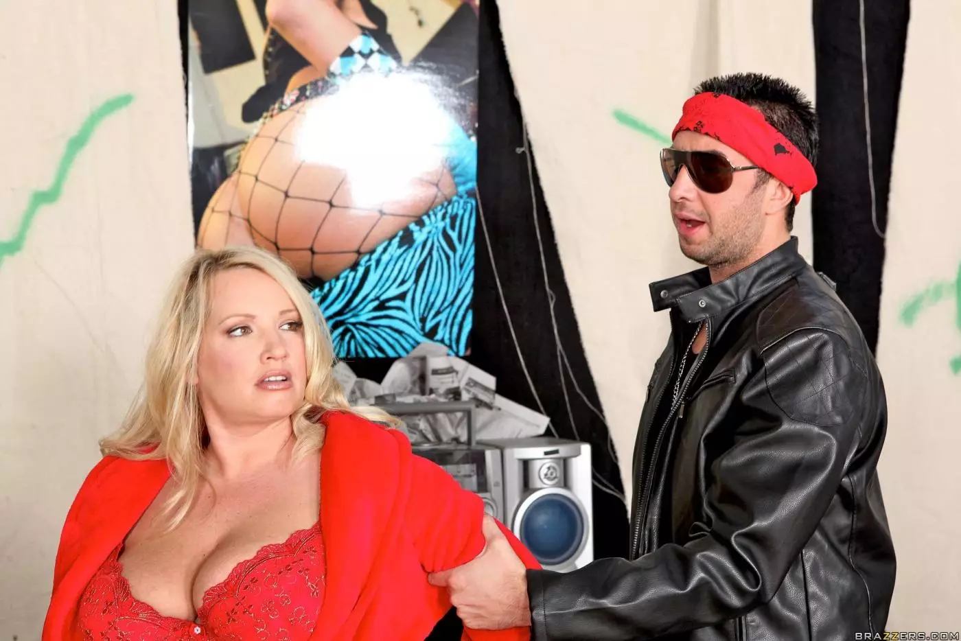 Большегрудая белокурая мамуля Rachel Love в красном нижнем белье трахается с рок-певцом — Rachel Love