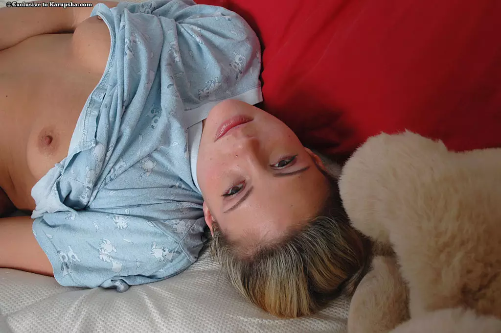 Riley Brooks скинула свои белые трусики и пользуется вибратором для обладания своей безволосую киской — Riley Brooks