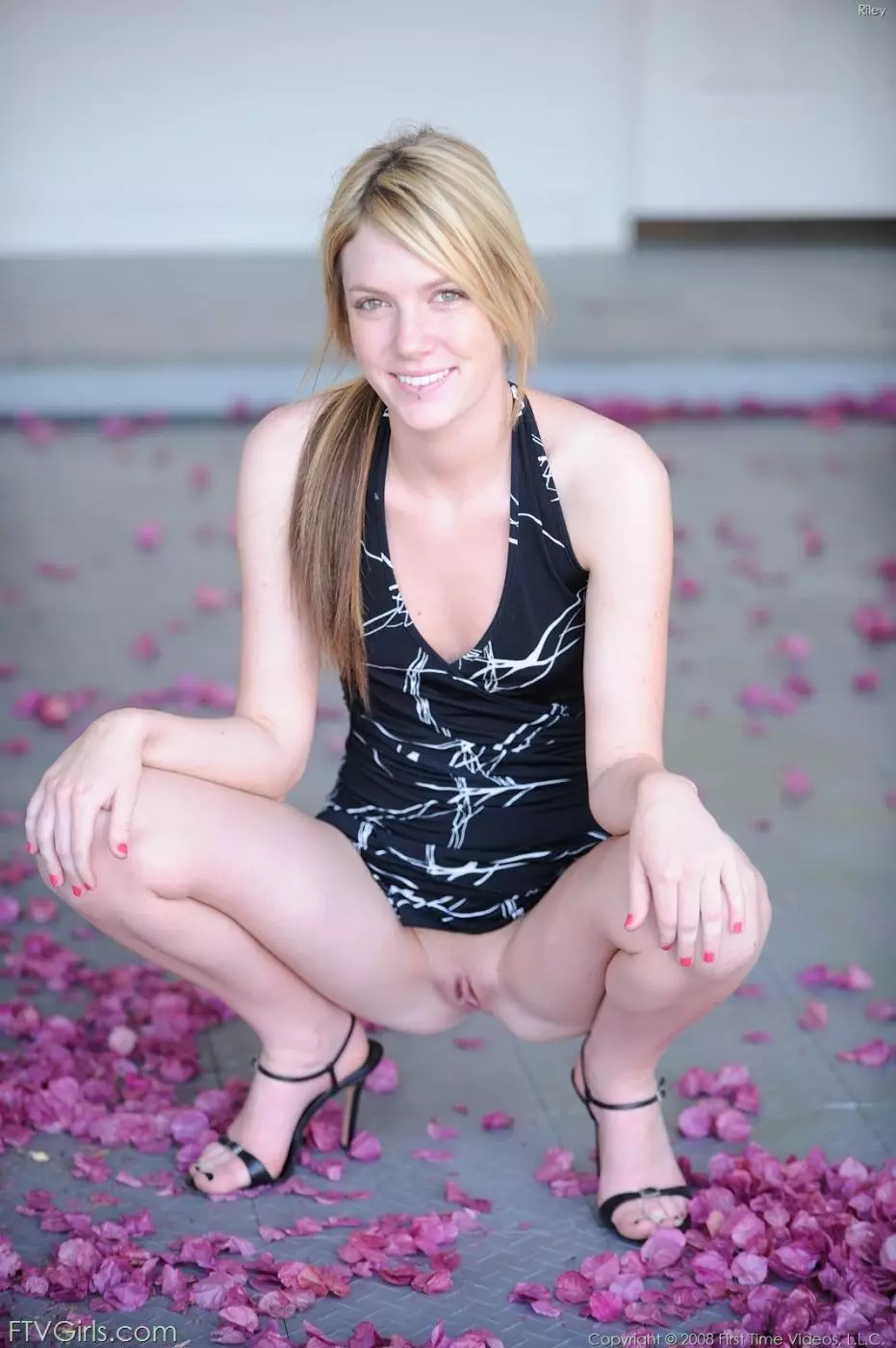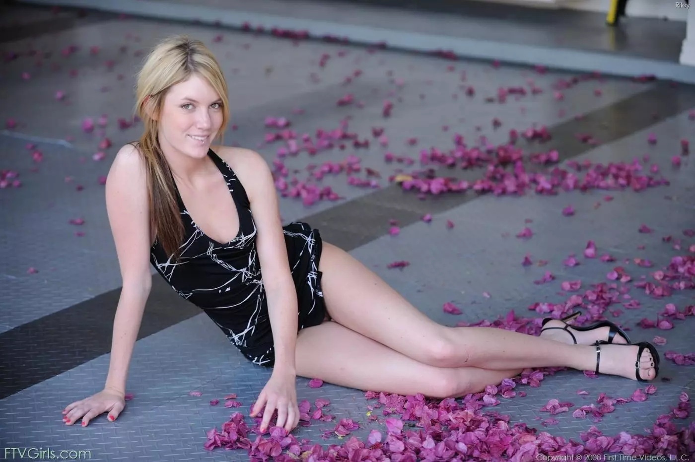 Развратная блондинка Riley Ray показывает свои интимные части тела, сняв свое черное платье — Riley Ray
