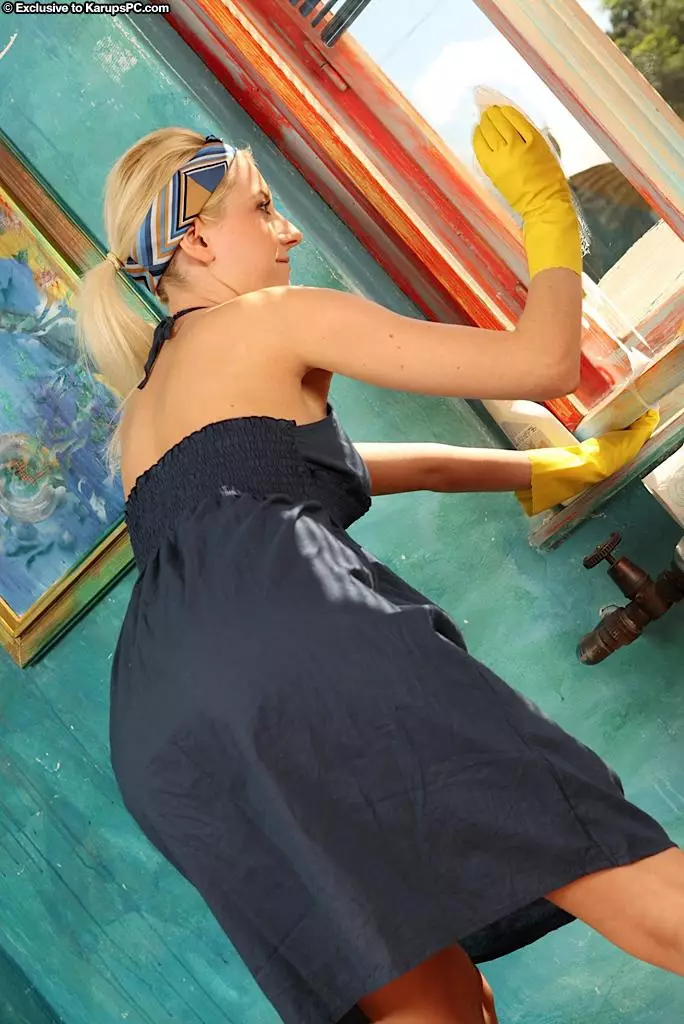 Блондинка-подросток Sabina Karupspc убирала дом и решила показать бритую киску — Sabina Karupspc