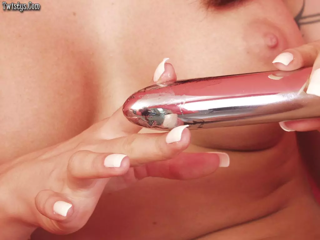 Sabrina Twistys пощипывает свои торчащие сиськи и вставляет игрушку между ними, а затем трахает себя в киску — Sabrina Twistys