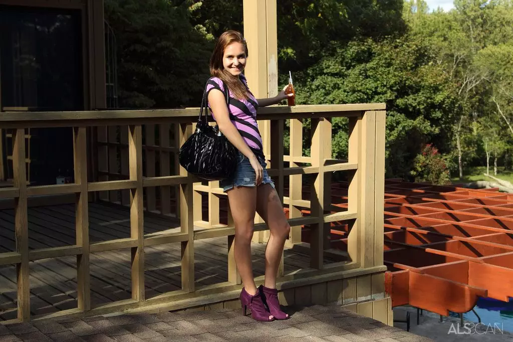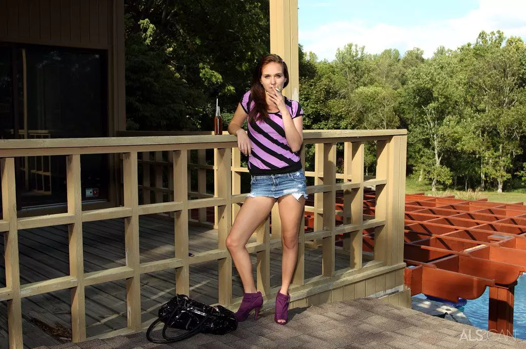 Похотливая милашка Sadie Grey раздвигает ножки на земле и вставляет в киску игрушки — Sadie Grey