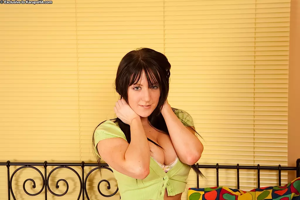 Привлекательная английская брюнетка с сексуальными ножками, большими дойками и бритой киской Samantha Bentley раздевается — Samantha Bentley