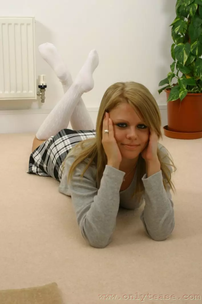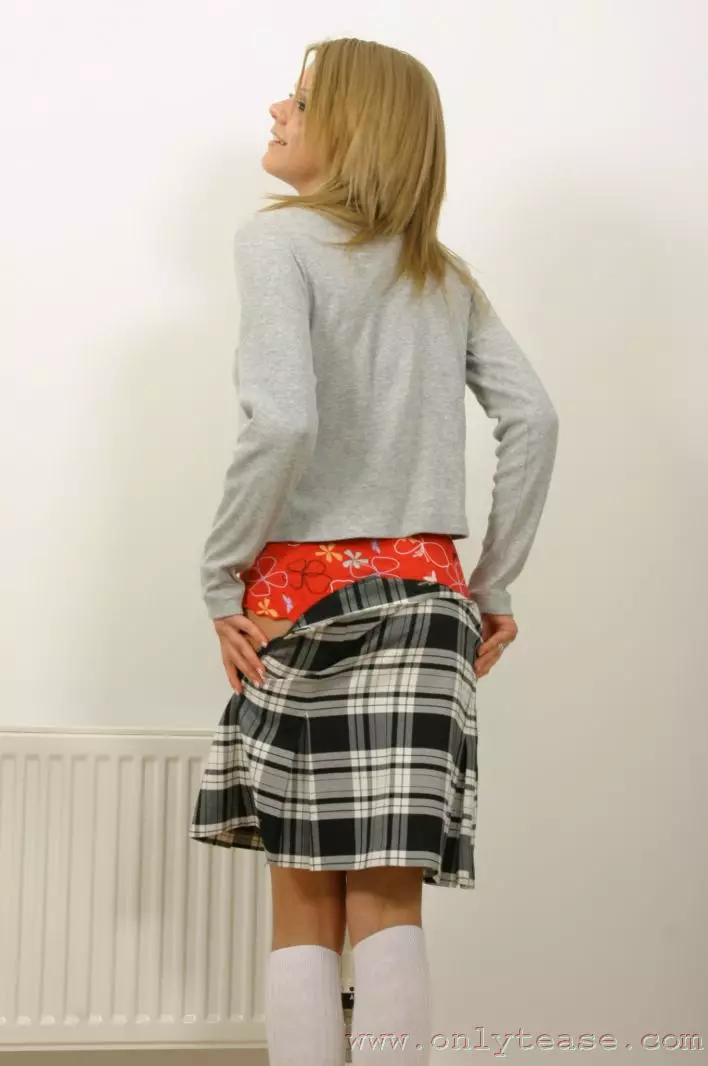Очаровательная блондинка Sammy Jo раздевается до красных трусиков — Sammy Jo