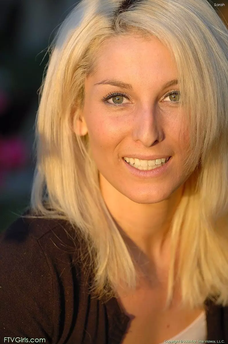 Игривая белокурая бестия Sarah FTV в ультра короткой джинсовой юбке растягивает свою киску — Sarah FTV