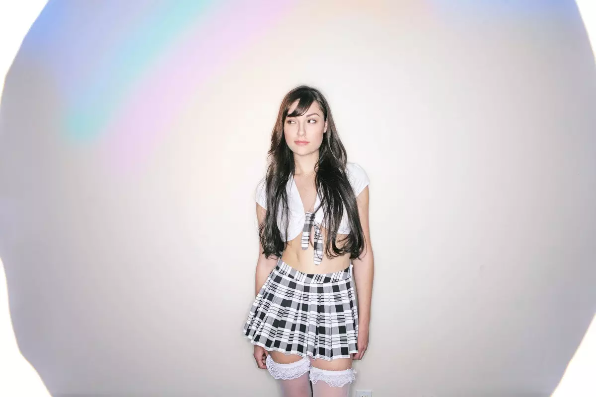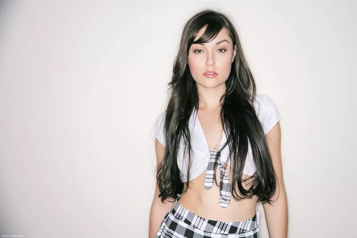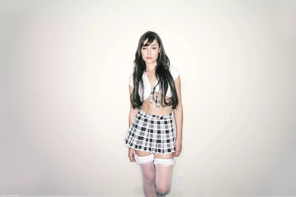 Высокая девочка в униформе колледжа Sasha Grey позирует топлесс, показывая свою маленькую грудь — Sasha Grey