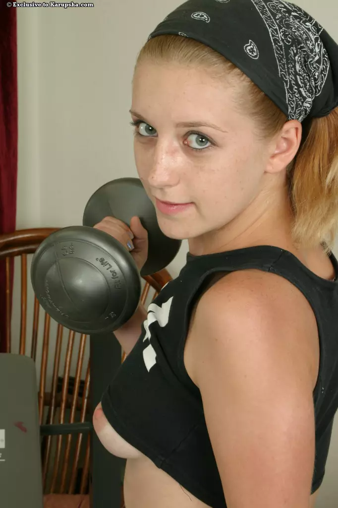 Задорная Shari Counts демонстрирует лысую киску после работы в спортзале — Shari Counts