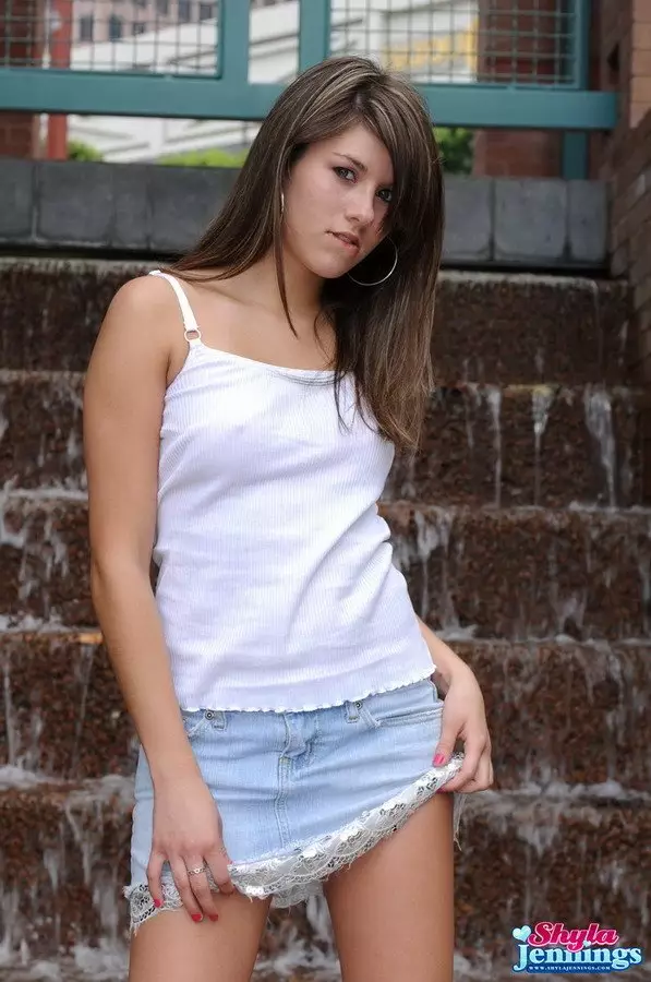 Юная милашка Shyla Jennings показывает маленькие титьки и бритую киску на природе — Shyla Jennings