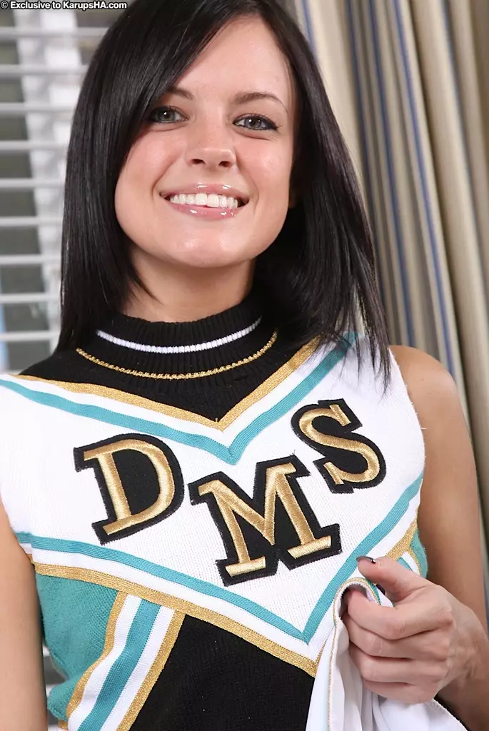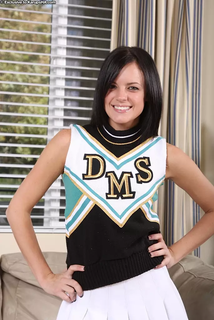 Чирлидерша Stephanie Sage снимает униформу и белые трусики, чтобы показать свою дырочку — Stephanie Sage