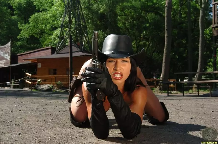 Игривая детка с оружием и в сапогах и шляпе Susana Spears показывает самые интересные части своего тела — Susana Spears