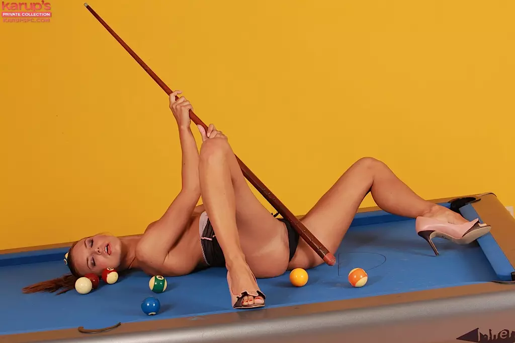 Темноволосая малышка Suzie Carina на биллиардном столе заполнила вылитый лобок — Suzie Carina